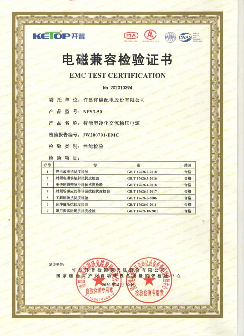 智能凈化穩(wěn)壓電源測試17626.5報(bào)告 證書JW191741